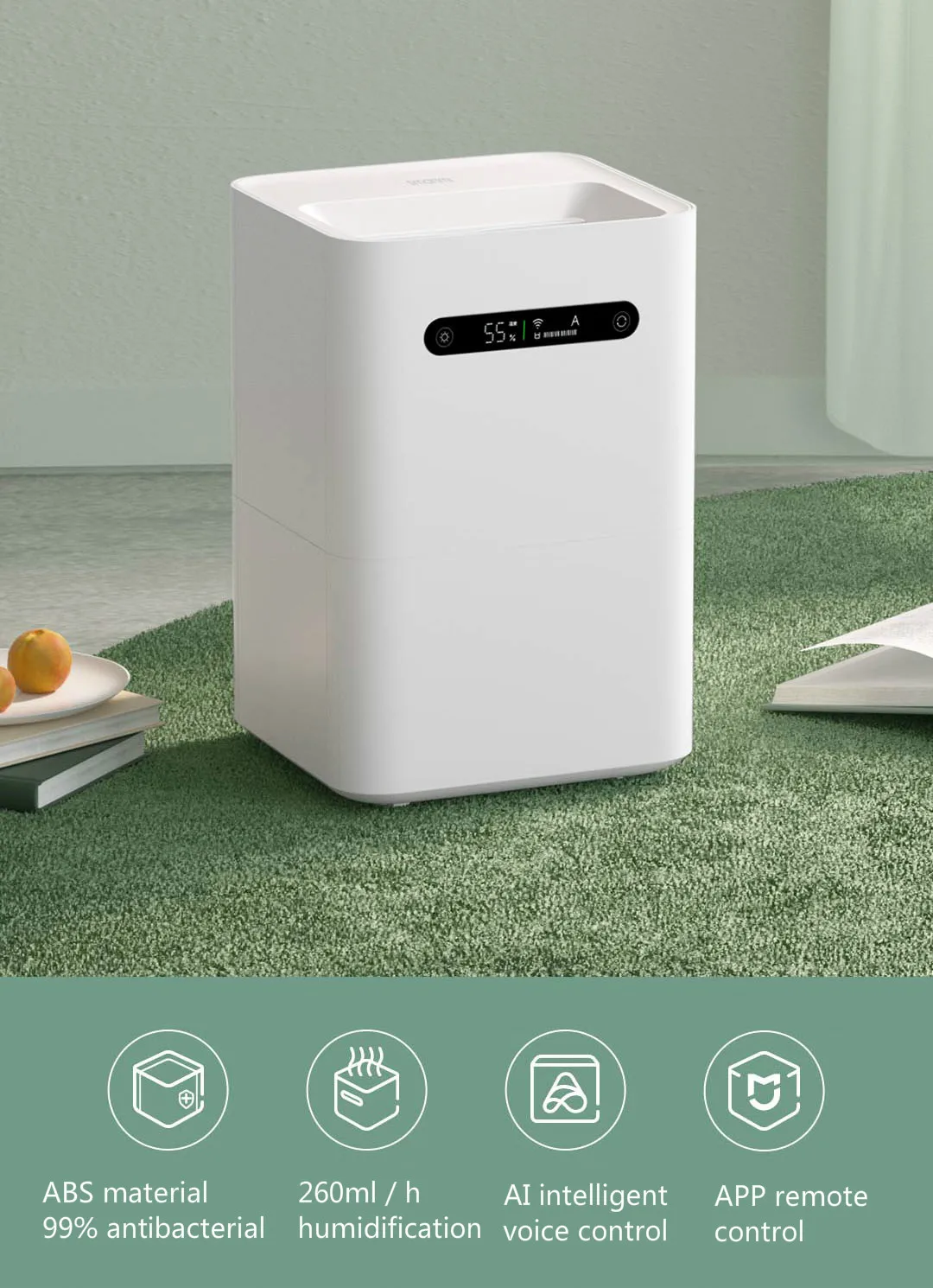 Увиденная влажность коснулась интеллекта Новый оптимизированный режим управления на основе нового поколения увлажнителей SMARTMI pure. Корпус имеет большой цифровой дисплей, который отображает влажность воздуха в реальном времени, объем воды, шестеренку и другую информацию. В то же время он интегрирует сенсорные кнопки для более легкого управления.