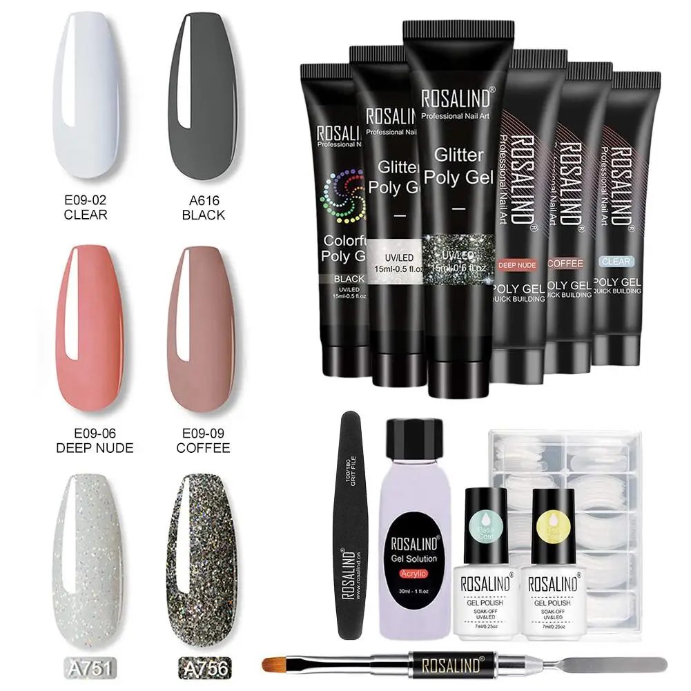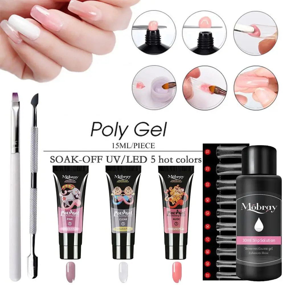 Набор для наращивания ногтей с полигелем, набор для наращивания ногтей, набор для укрепления ногтей, набор для полигеля, со строительным клеем, ручка для ногтей