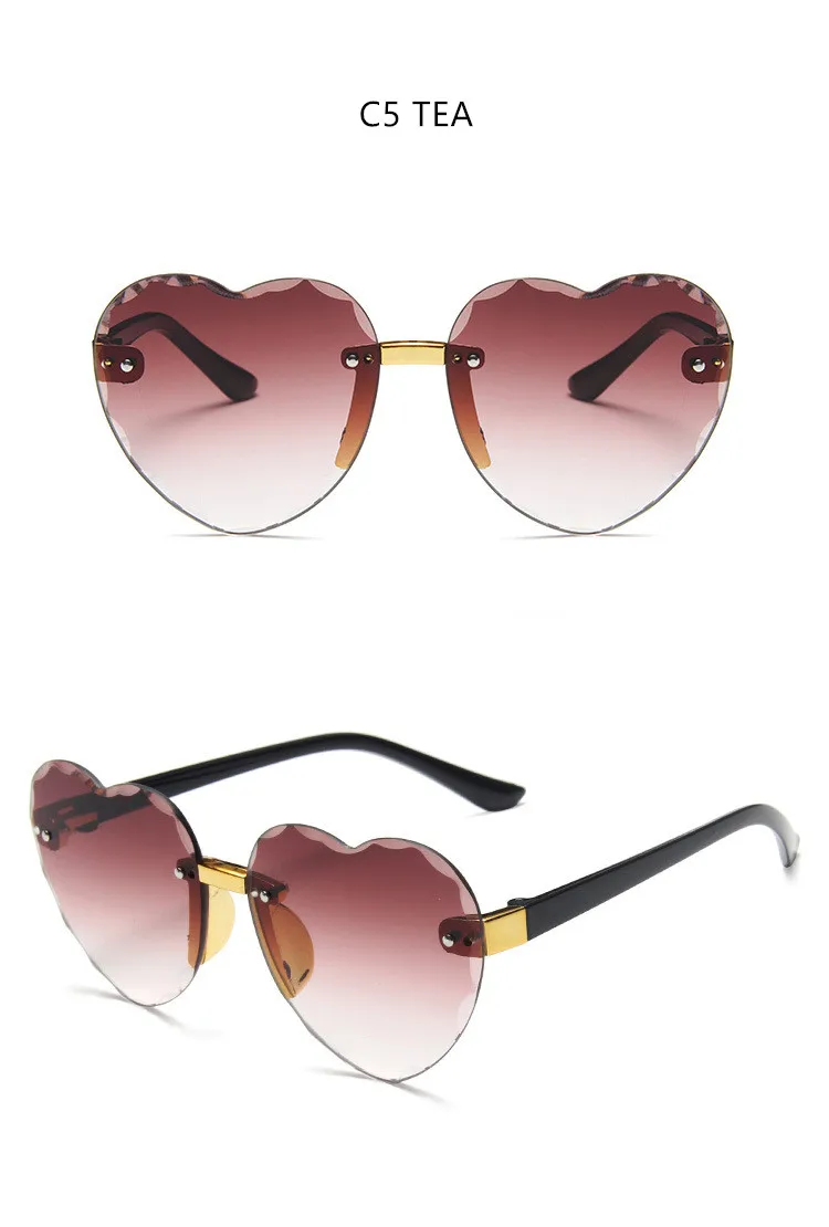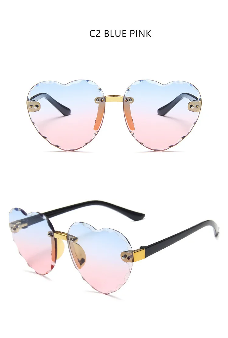Детские солнцезащитные очки с рисунком сердца 2020, безрамные линзы для мальчиков и девочек, градиентные солнцезащитные очки оранжевого и синего цвета