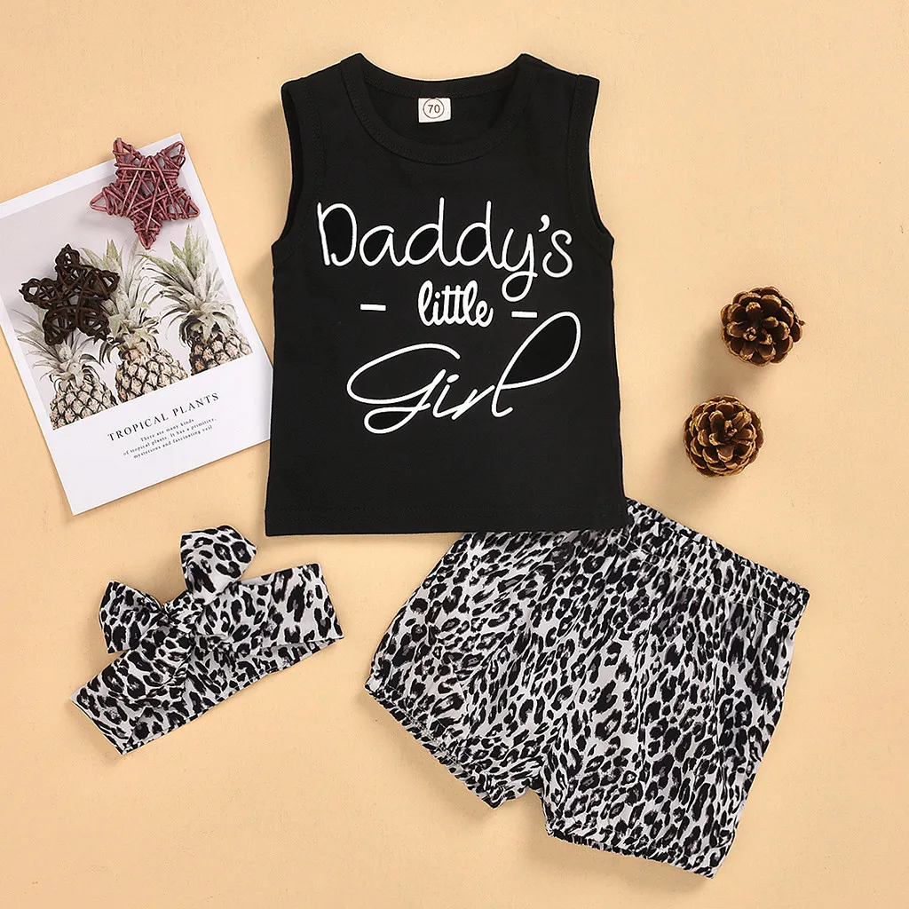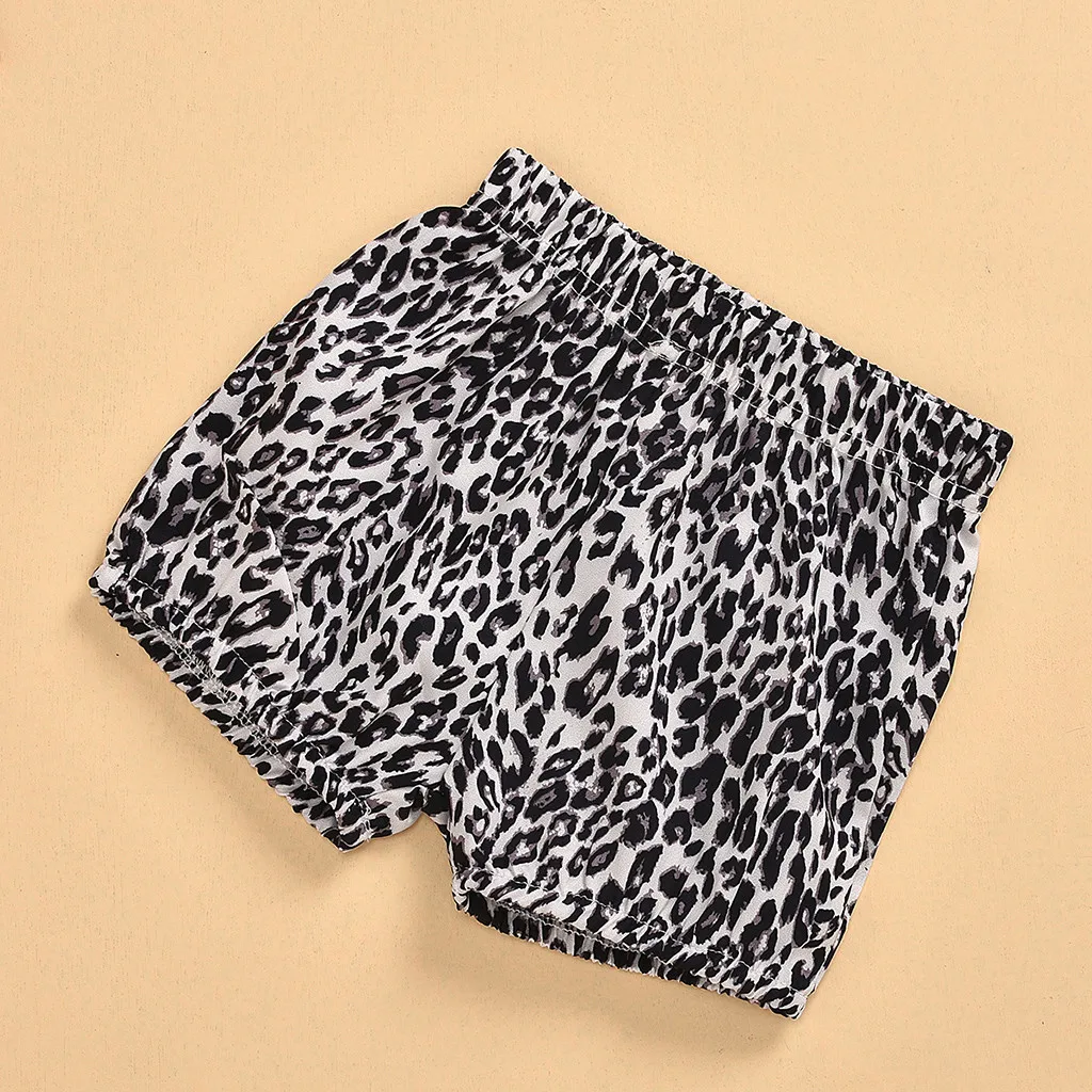 Жилет без рукавов для маленьких девочек, топы, шорты с леопардовым принтом, комплект одежды