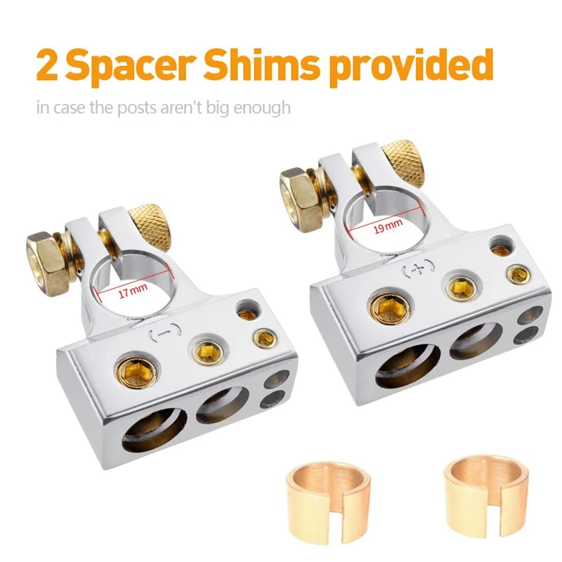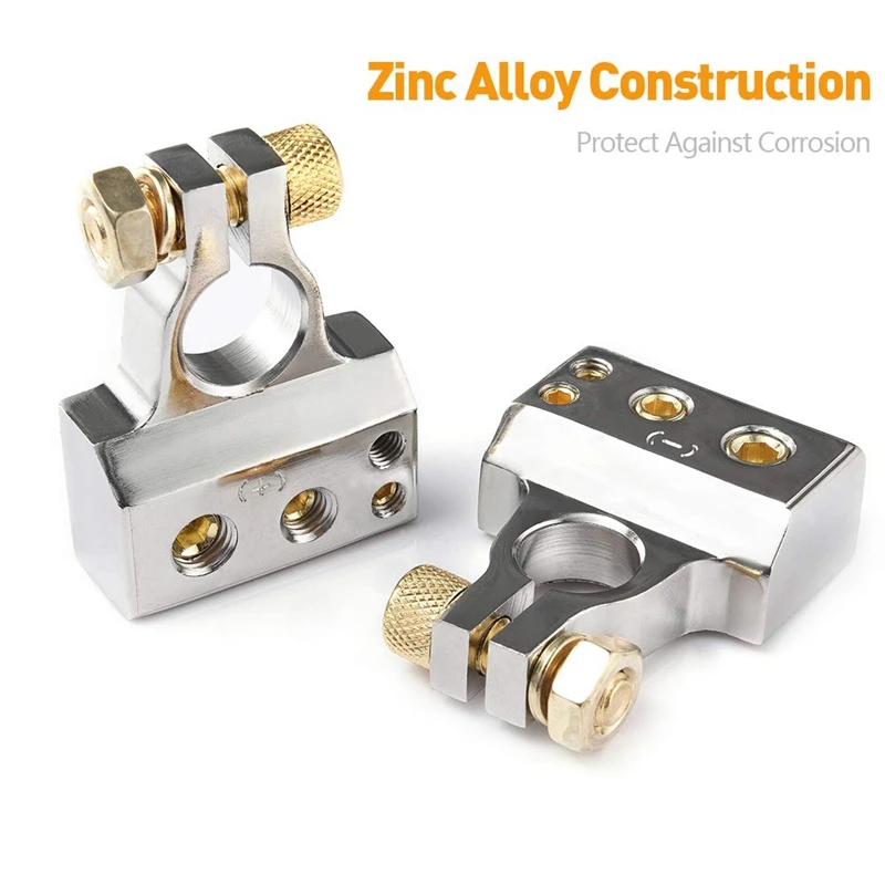Плотно Зажимная проволока-эти автомобильные клеммные разъемы на самом деле плотно прилегают и несколько способов удерживать провода. Отлично и удобно при подключении нескольких проводов размера к одному и тому же терминалу. Простая установка-они подходят для аккумуляторов без проблем или корректировки. Установка проста и требуется только набор гаечных ключей. Провод батареи плотно удерживается специальными винтами