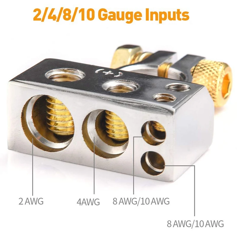 Прочная конструкция-конструкция для сильной электрической проводимости, уменьшает потери передачи тока. Также защищает Пост Батареи от коррозии в течение длительного срока службы батареи. Бонусная 2 Защитная крышка в комплекте. Четыре выхода проводки-2/4/8/10 AWG Калибровочные входы. Есть четыре разных размера розетки, легко модифицировать проводку