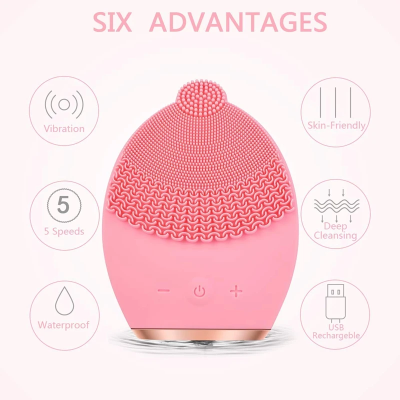Очищающая щетка, перезаряжаемая силиконовая кисть для лица, массажер для лица, отшелушивающий для сияющего чистого цвета лица