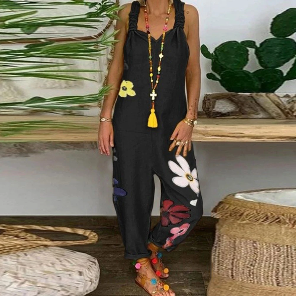 Женский свободный комбинезон без рукавов с открытой спиной и цветочным принтом