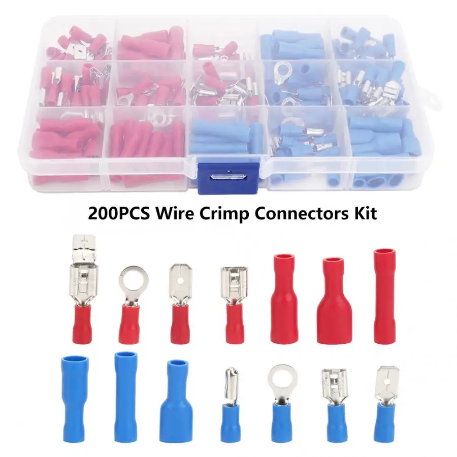 200 шт обжимной терминал изолированный Электрический провод разъем Набор для автомобильного применения