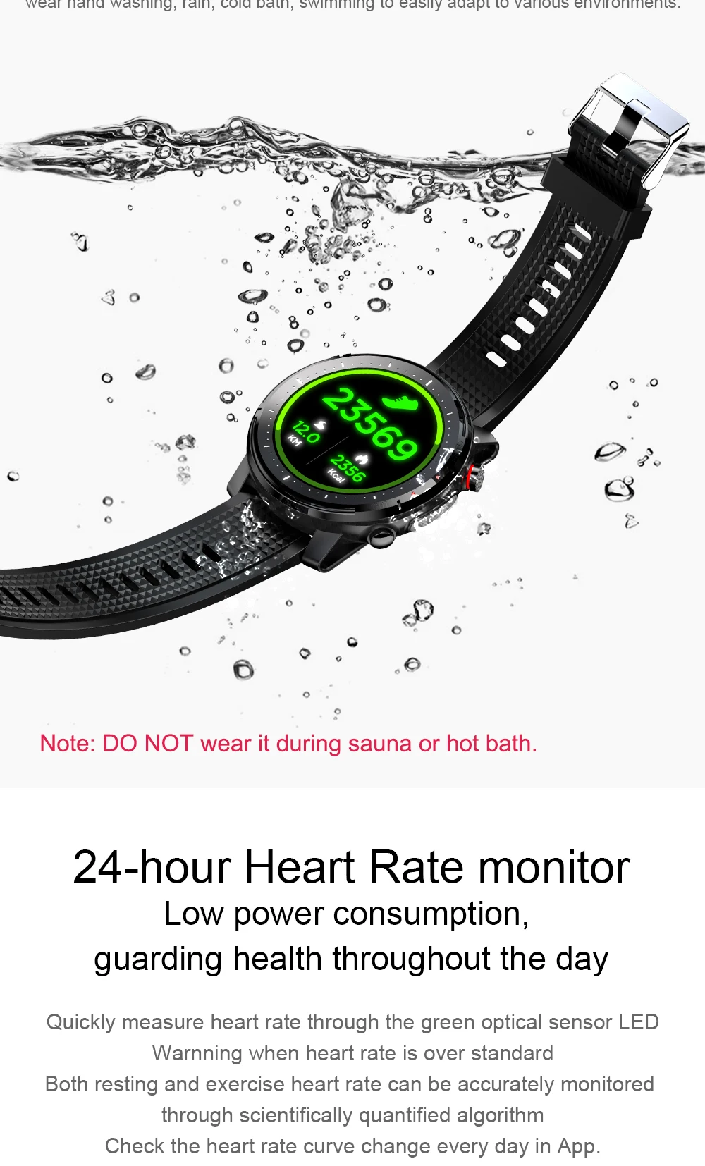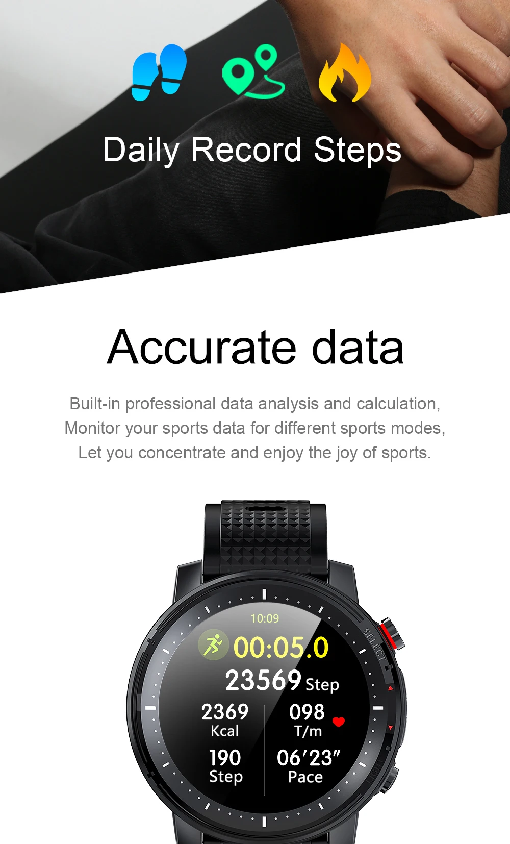 Частота сердечных сокращений: 24 часа непрерывный мониторинг шагов: «счетчик шагов, отслеживание ежедневных данных»