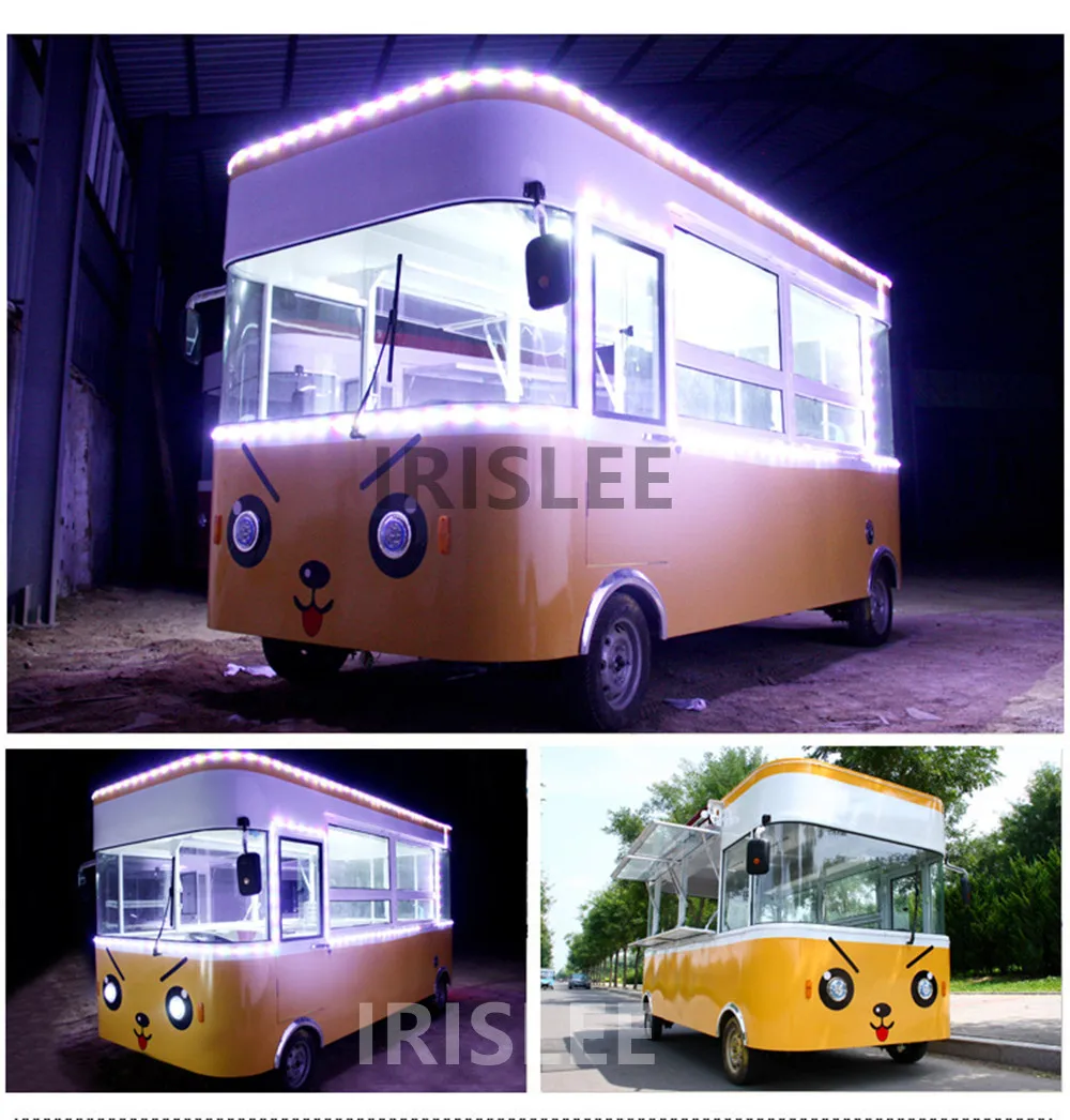 4 большими колесами Питание от аккумулятора 45 В и электрическая тележка для пищевых продуктов. Корпус 2 имеет окна продаж с обеих сторон, с светильник s спереди, некоторые рабочие скамейки, и яркий задний светильник сигнальной системы. Есть верстак из нержавеющей стали. Шкафы используются для внутреннего хранения товаров. Электрические аксессуары Потолочный светильник; Высокая видимость задний светильник сигнальная система; Розетка; ВКЛ/ВЫКЛ светильник ing переключатель управления. Система циркуляции воды с ручным душем смеситель, смеситель для душа, бак для пресной воды, сточные воды бак и 12V микро водяной насос Скорость вождения составляет 18-35 км/ч, а 65 км можно использовать после каждой зарядки. Может быть оснащен другими закусочными машинами (требуется покупка) для бесплатной установки в соответствии с вашими потребностями