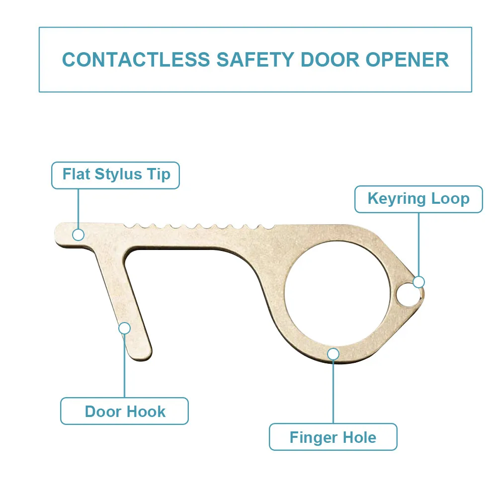 Key Door Opener Safe Easy Way To Avoide Germs-Contactless Safety Isolation Brass Key Antimicrobial Opener Door Handle Key