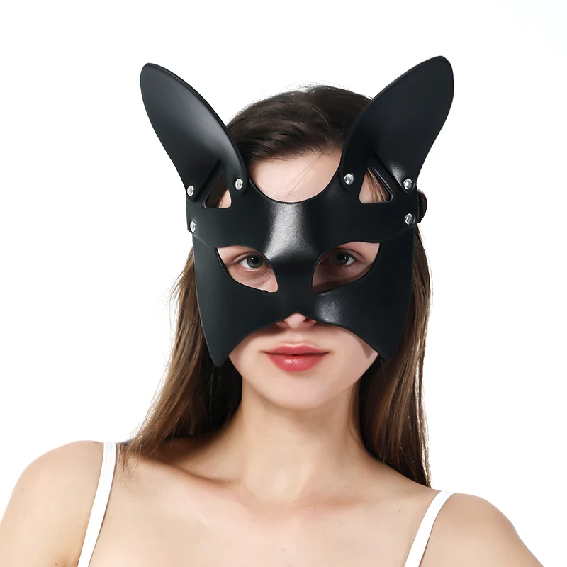 Сексуальная маска полуглазки Косплей лицо кошка кожаная маска черная кожа Регулируемая взрослая игра