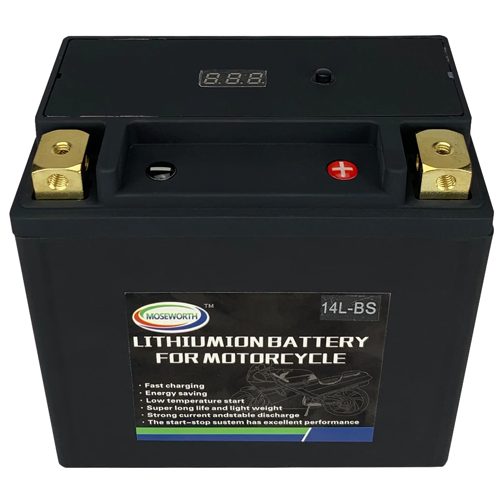 Размер 14-BS/14L-BS: 150x87x145 мм/5,9x3,4x5,7 дюйма 14-BS/14L-BS Вес: 1,85 кг/4.08lbs Защитная плата напряжения: Встроенный BMS Материал корпуса: Новый АБС-пластик Срок службы: более 2000 раз (3-5 лет) Номинальная емкость: 14 Ач Номинальное напряжение: 12 В CCA: 620A Эффективность зарядки: 3C Энергоэффективность: 95% Год саморазряд: 0.1% Начните переходных частот Напряжение колебания: 0,2 ~ 0,5 V Температура разряда: -25 ~ 80 градусов по Цельсию