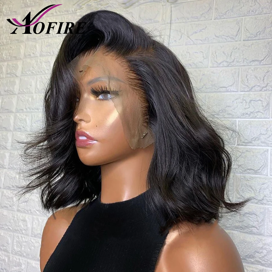 Природа черный Синтетические волосы на кружеве парики из натуральных волос для Для женщин предвар боковая часть короткий Боб волна 13x6 Синтетические волосы на кружеве парик 150%