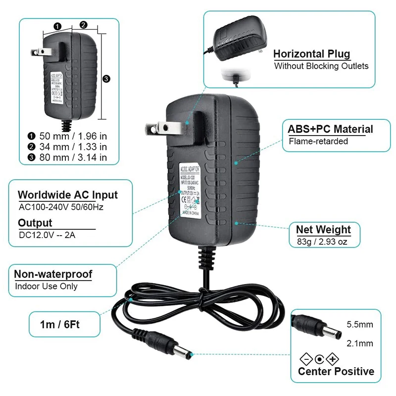 Прилагаемый адаптер переменного тока 12 В 2 А: AC110-240V входное напряжение по всему миру, более удобное подключение вашего домашнего аудиоустройства. Перед покупкой убедитесь, что выход постоянного тока (12 В 2 а) и размер наконечника соединителя 5,5x2,1 мм соответствуют вашему адаптеру