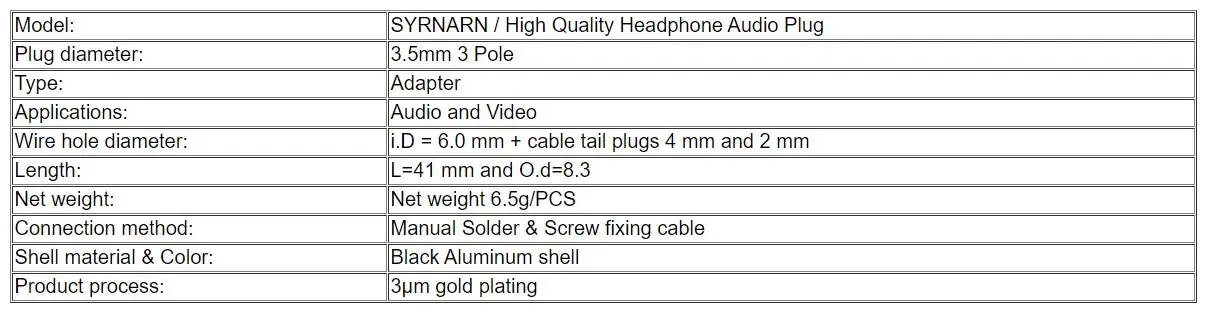 Syrnarn 3 шт. jack 3,5 мм аудио разъем 3 полюса с позолотой 3,5 разъем для наушников с алюминиевым корпусом и закручивающаяся крышка с несъемным кабелем