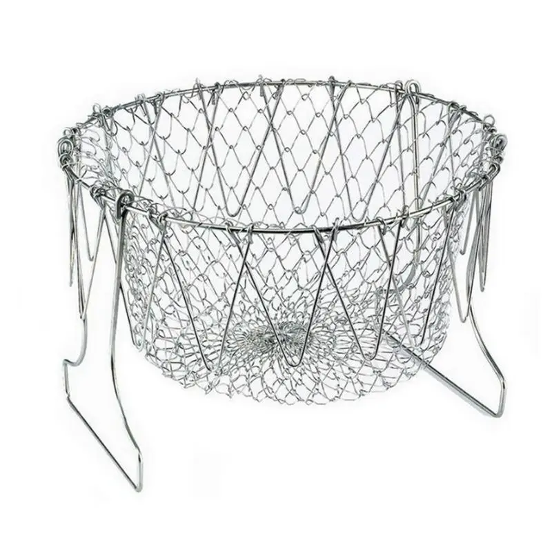 Описание: Совершенно новый и высокое качество. Мгновенный гибкий необходимый кухонный помощник. Он начинается с плоской поверхности и мгновенно расширяется к гибкой корзине, которая позволяет вам легко варить, кипятить или глубоко жарить продукты. Специально разработанные ручки остаются холодными на ощупь. При приготовлении пищи Просто поднимите корзину и перейдите прямо из кастрюли на тарелку. Вы можете поднимать еду в корзине, поднимать ручки назад и идти прямо от Раковины к горшку одним легким движением. Он складывается на плоской подошве для удобного хранения в любом месте. Материал: нержавеющая сталь. Размер: 23 см x 23 см x 14 см Размер ручки: 16,5 см x 12,5 см Посылка включает в себя: 1 X складная корзина для жарки