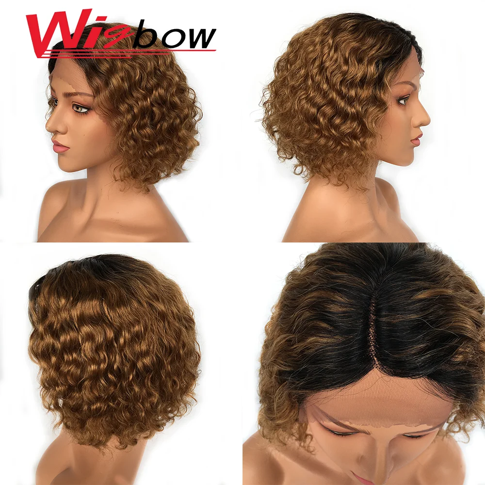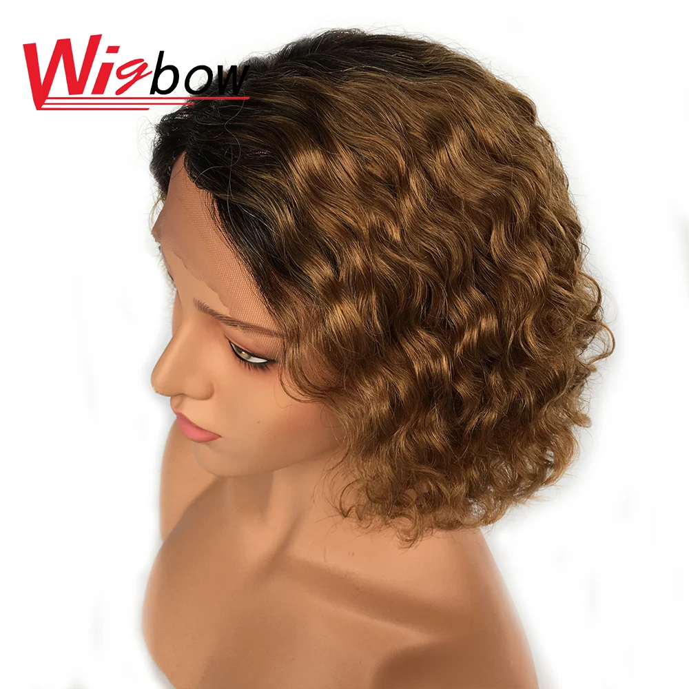 Кудрявые человеческие волосы парик для женщин блонд парик короткая волна воды перуанские волосы 150% плотность Remy волосы T1B/30 Кружева часть волос Wigbow