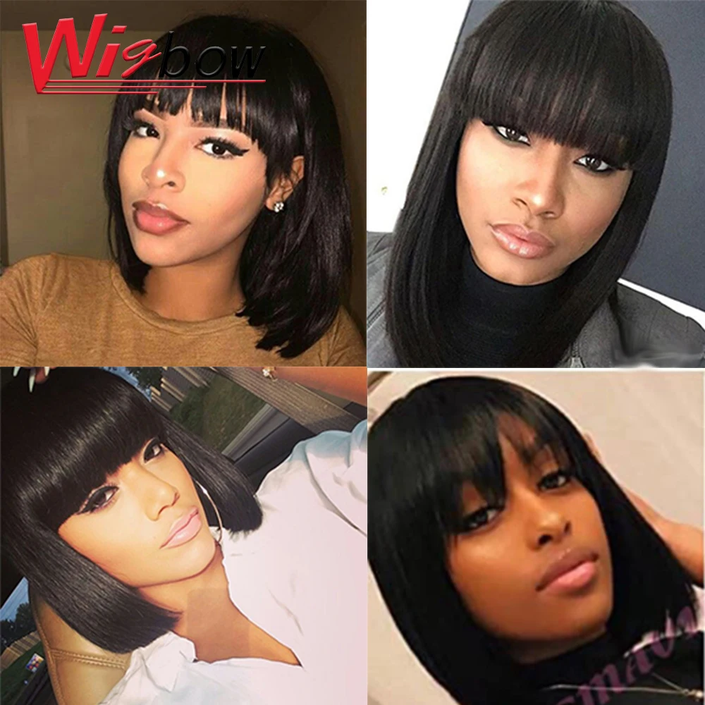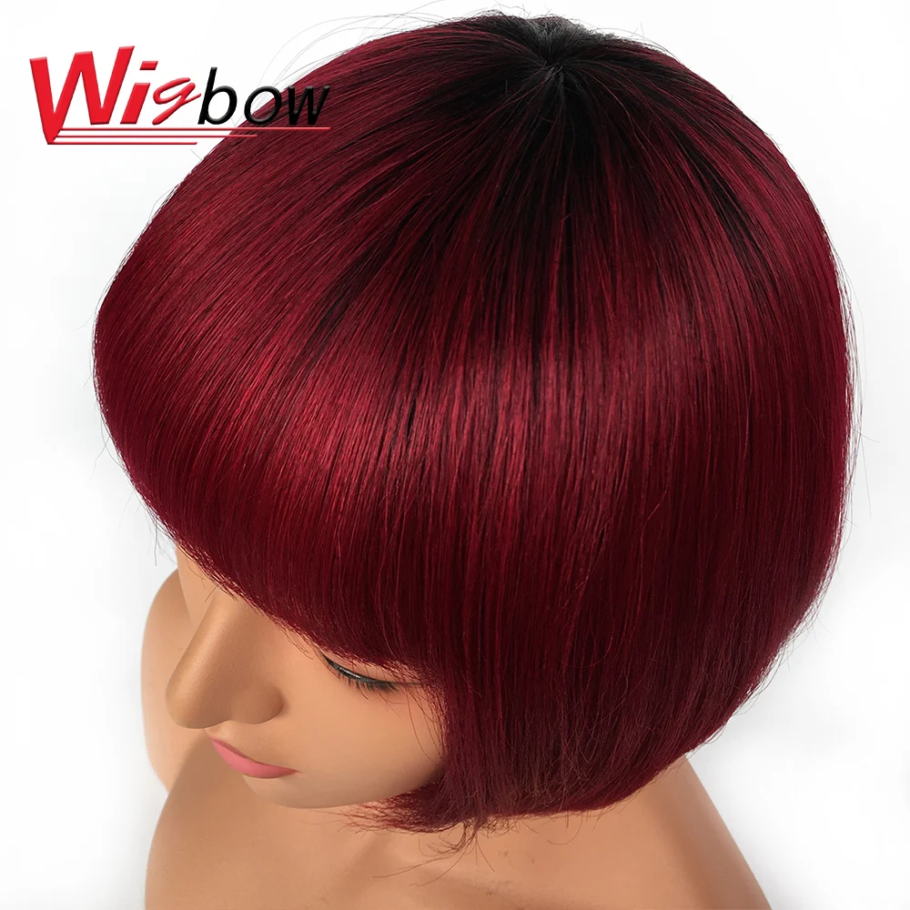 Короткий прямой парик с Бобом, блонд, красные человеческие волосы, парики с бахромой, парик с челкой, перуанские человеческие волосы, парики для черных женщин