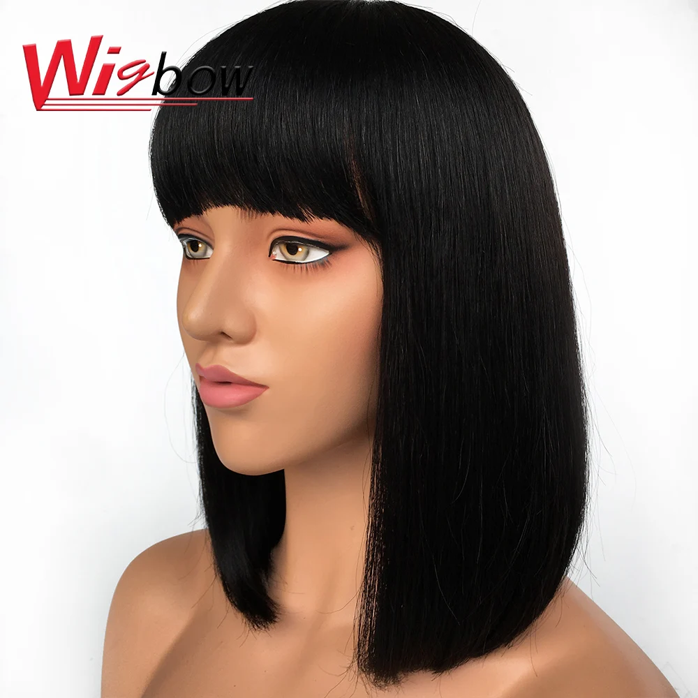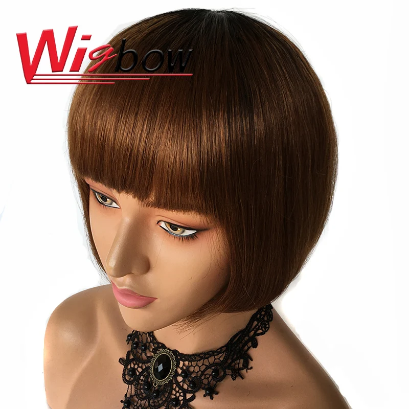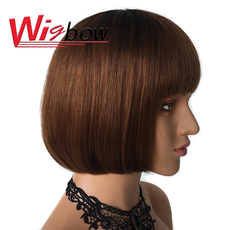 12 дюймов T1b30 боб парик с челкой 100% человеческие волосы