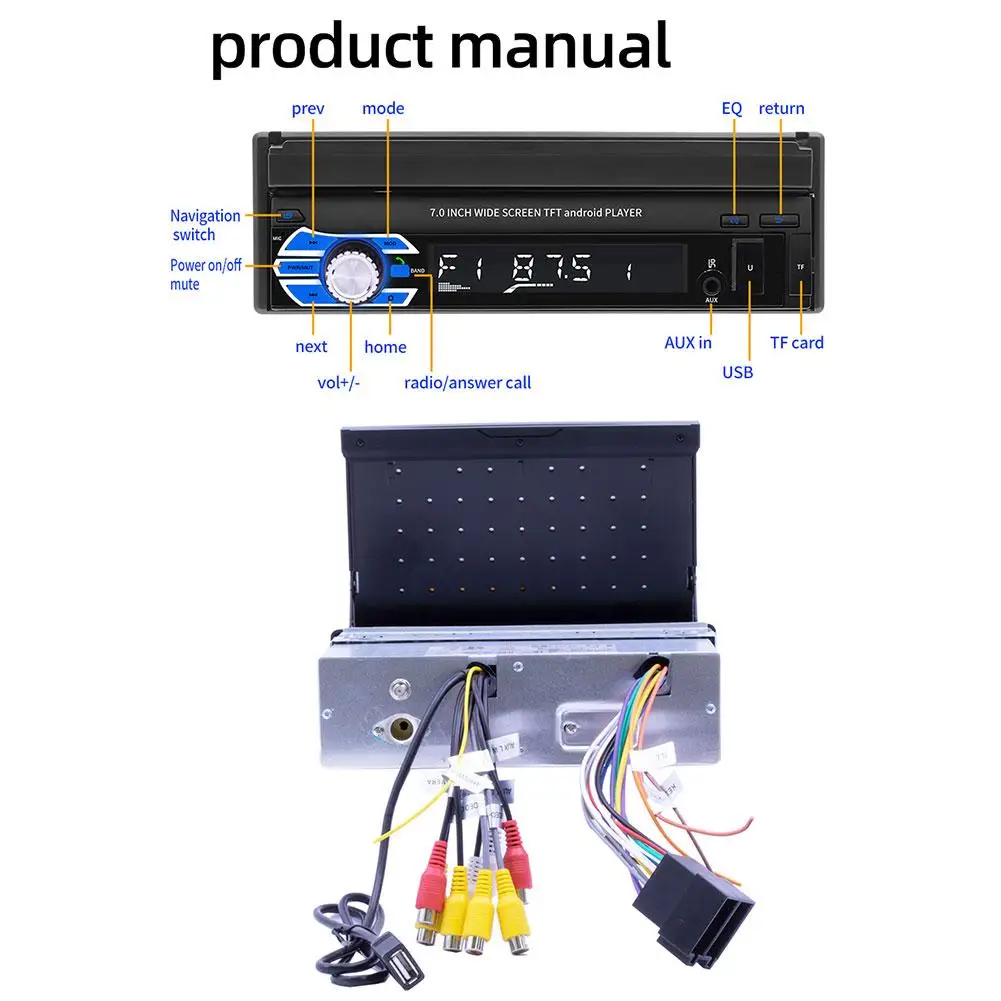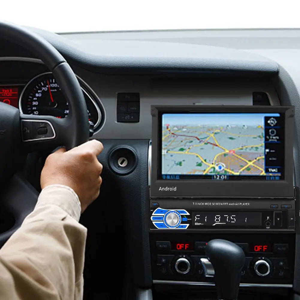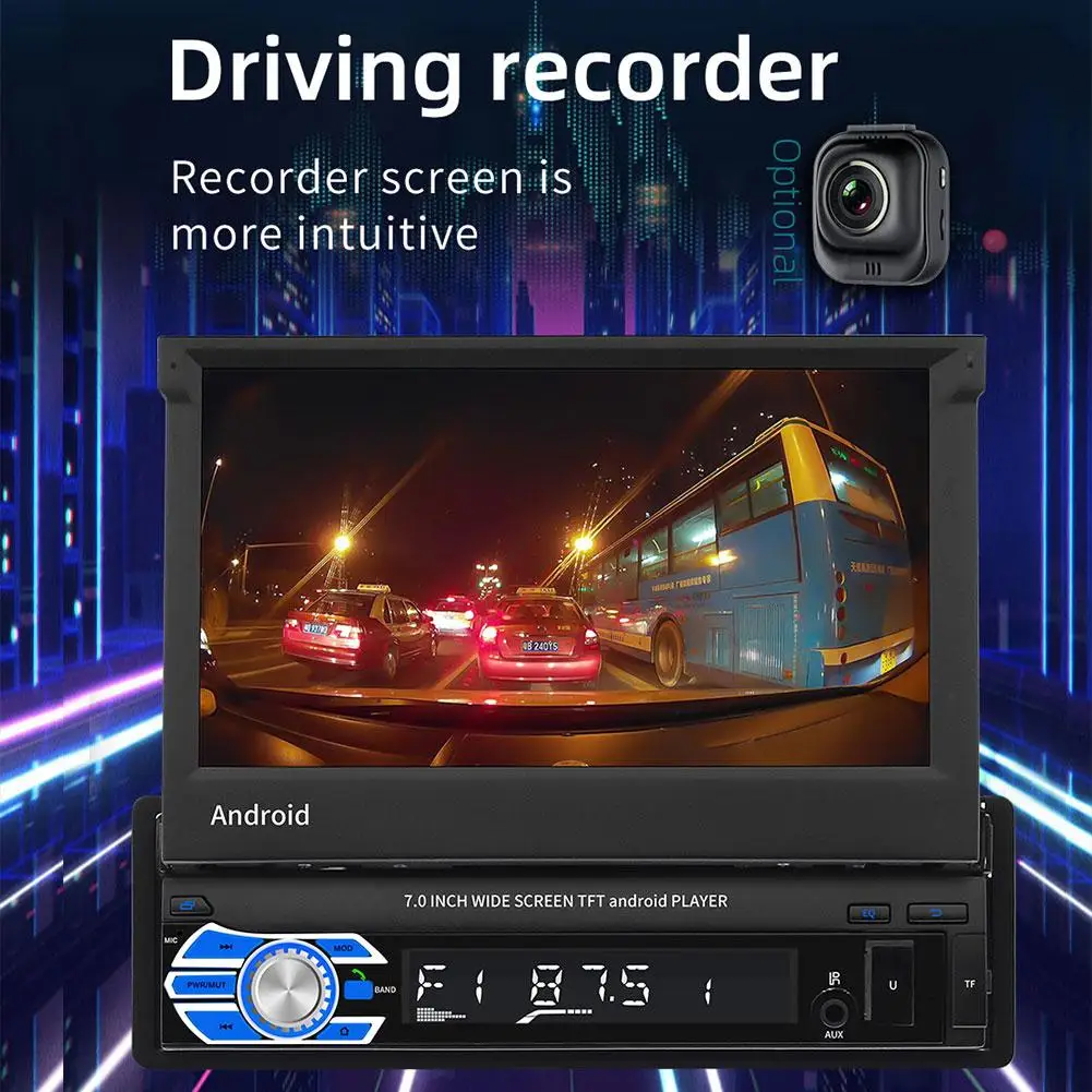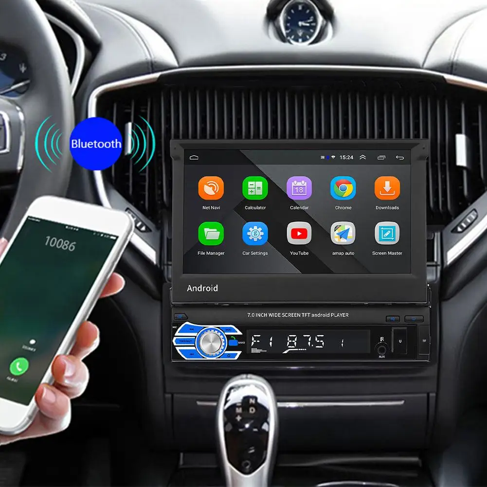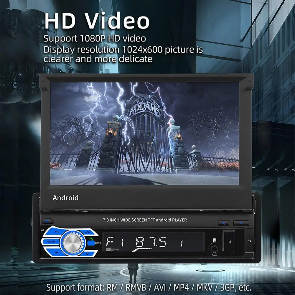 1. 7 inch 1 DIN 1080P HD 1024 * 600 resolution car radio MP5 player folding capacitive touch screen.