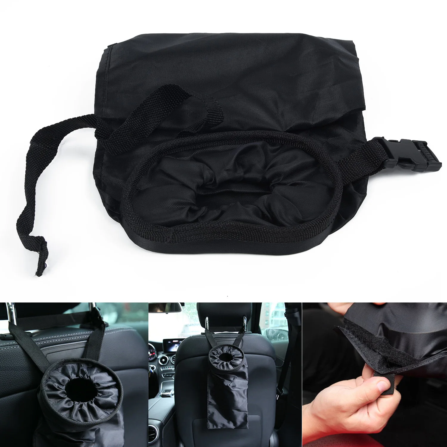 *Adjustable fastening strap for hanging on the car seat headrest