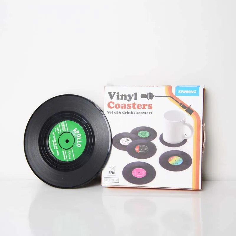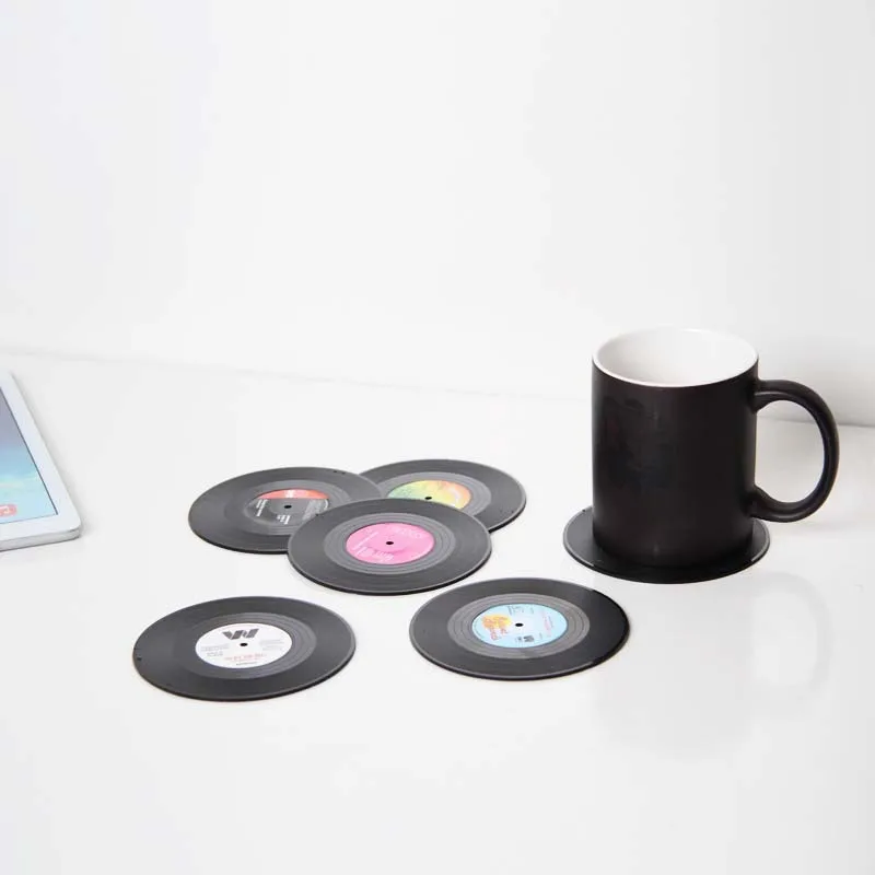 ПРОДВИЖЕНИЕ! 6 штук / набор вращающихся ретро-виниловых подставок для напитков.