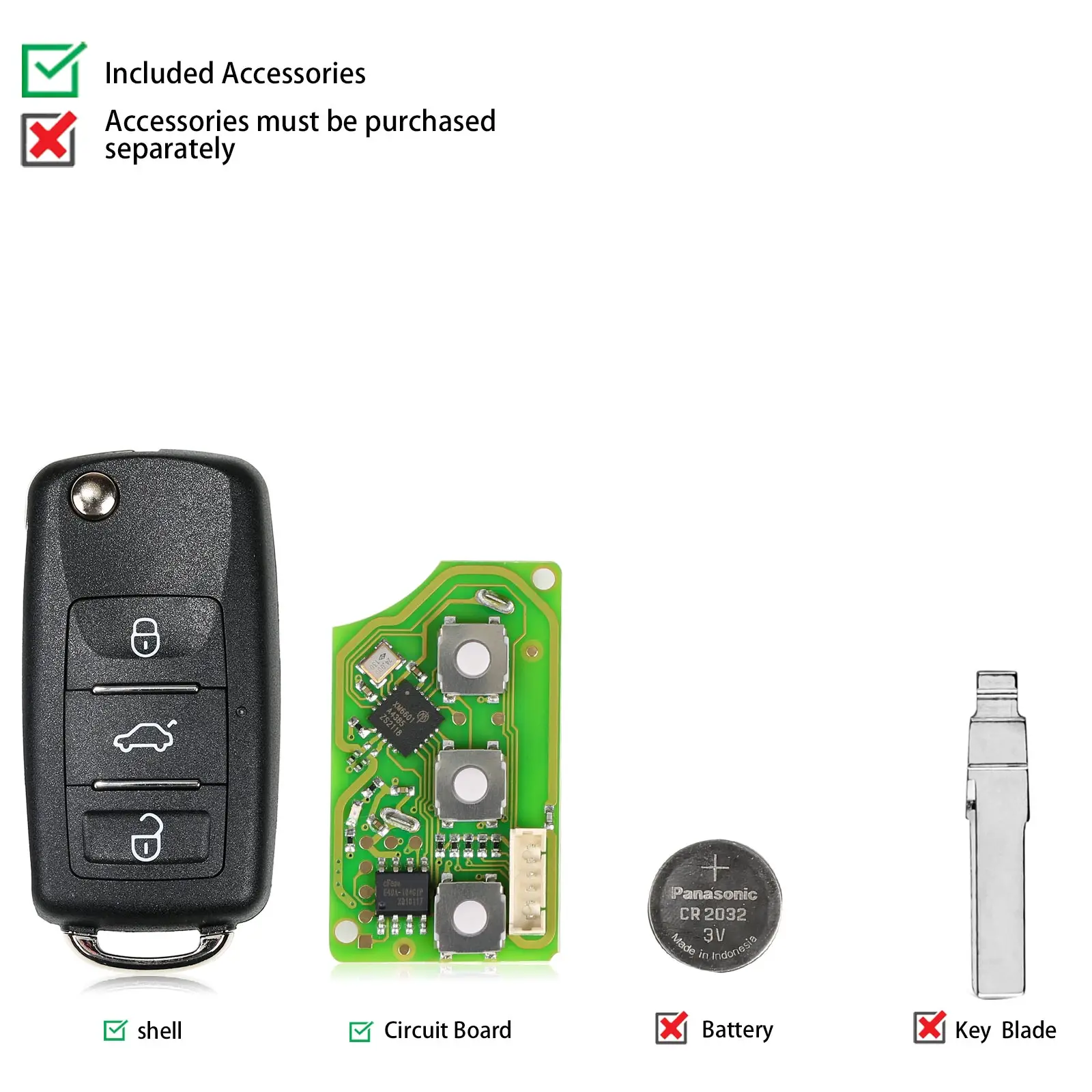 10 шт. x Xhorse XKB510EN универсальный дистанционный ключ B5 Тип 3 кнопки