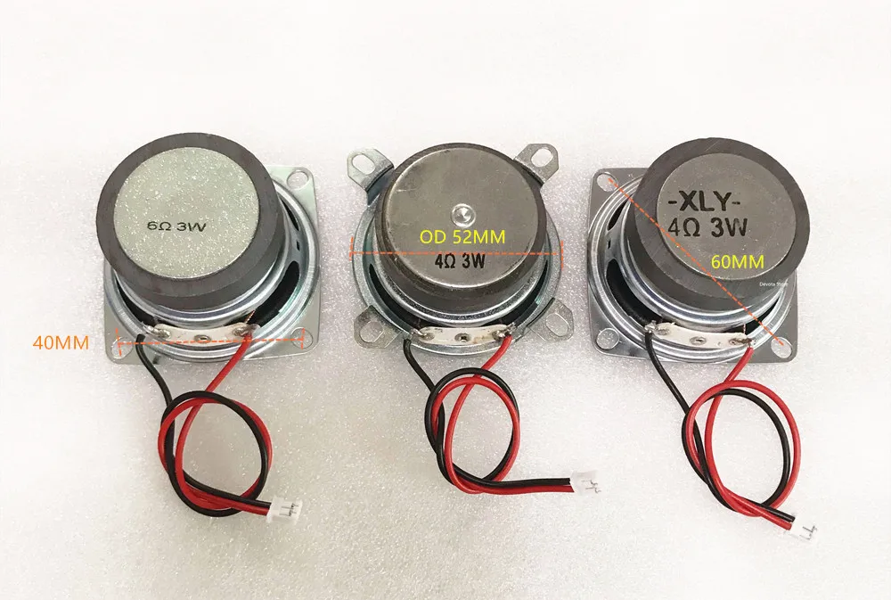 Видео содержит отзывы пользователей. Описание: высококачественные аксессуары, пожалуйста, подтвердите размер! Полночастотный небольшой динамик, искусственная кожа, серебряная ударная пленка, 4 Ом/6 Ом 3 Вт, хорошее качество звука, низкая частота также имеет хорошую производительность. Высокая производительность, высокая чувствительность, подходит для мини-динамиков/звуковых систем DIY, небольших динамиков. Размер: Высота: 25 мм Диаметр: 52 мм Расстояние между диагональными отверстиями: 60 мм Расстояние между соседними отверстиями: 42 мм