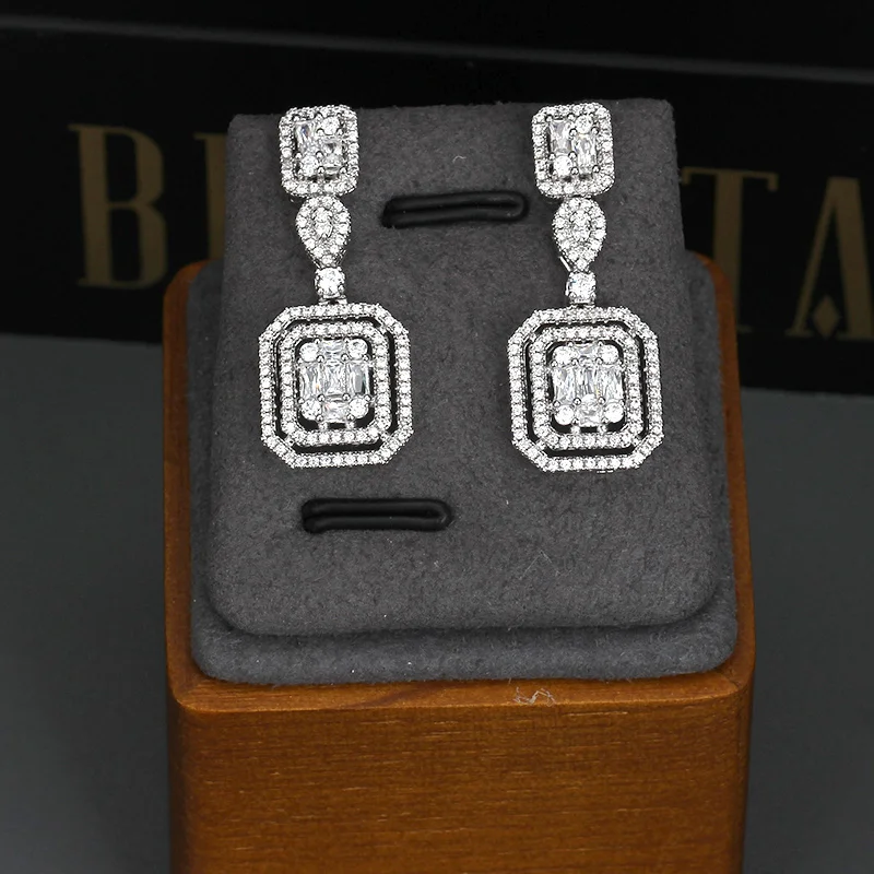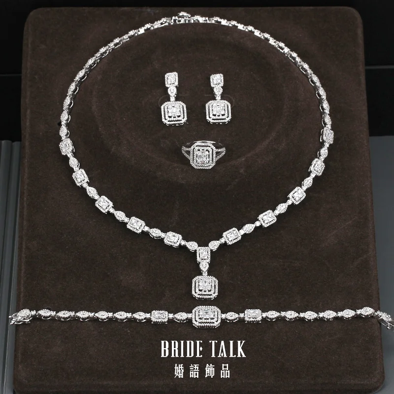 Невеста говорить Роскошные геометрические кубический циркон серебряный цвет ожерелье серьги браслет кольцо набор украшений для женщин Свадебные ювелирные изделия
