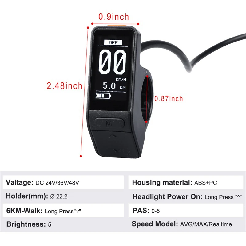 Электрический велосипед Sw102 Lcd мини Водонепроницаемый контроллер скорости для Bafang Bbs01 Bbs02 Bbshd Mid Motor