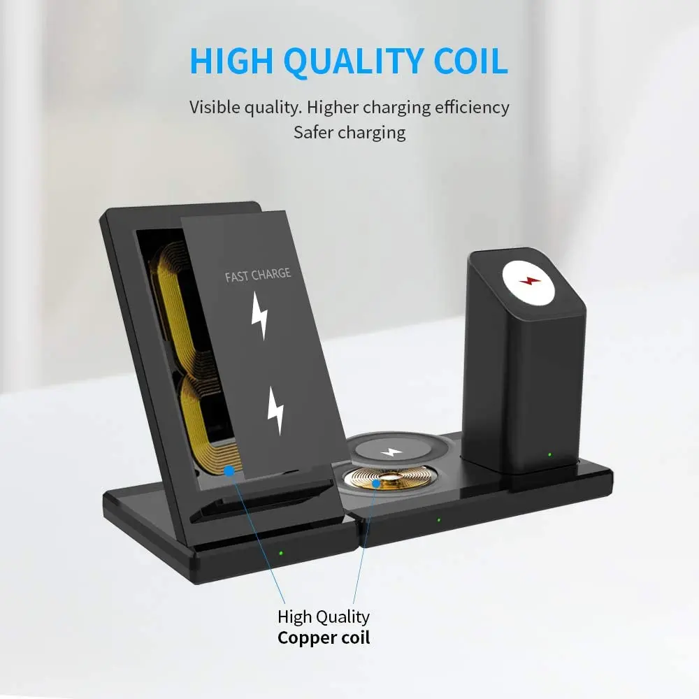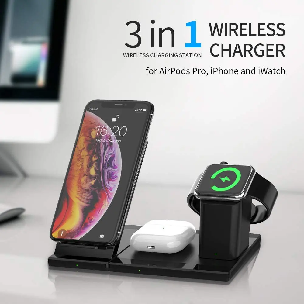【С QC 3,0 адаптером для быстрого зарядного устройства наш продукт оснащен адаптером быстрого зарядного устройства QC3.0 (9 В/1.8A), который может заряжать три устройства одновременно и может заряжать быстро, что решает большинство проблем медленной беспроводной зарядки. 5 в 2 А-это нормальное состояние зарядки, и скорость зарядки будет медленной. Расстояние зарядки 0-8 мм. Пожалуйста, не надевайте защитный чехол толщиной более 3 мм. 【WIRELESS зарядки STATION】 3-в-1 Беспроводная зарядная станция самая последняя модель может поддерживать AirPods Pro , iPhone XS MAX XR, iPhone 8/8 Plus, iPhone 11/11 Pro / 11 Pro Max / iPhone X и Airpods Беспроводная зарядная коробка Samsung S9 / S8 / Note 8 / S7 Edge и любое совместимое устройство; Для беспроводной зарядки не нужно снимать чехол для телефона, если он не металлический или имеет кредитную карту на чехле. 【 Высококачественная Беспроводная зарядка не царапает iPhone/iwatch/airpods, блокируя экран или края при зарядке устройства. Подставка для зарядки скрывает кабели iWatch и AirPods Pro, экономя пространство на вашем столе. 【Расширенная производительность безопасности 】 Беспроводная зарядная станция усовершенствованный чипсет значительно улучшает скорость зарядки оборудования. Полностью устраняет риск излучения и перегрева, связанных с беспроводной зарядкой. Встроенный смарт-чип обеспечивает контроль температуры и защиту от напряжения, контроль температуры и обнаружение посторонних объектов. Защитите аккумулятор вашего устройства от перезарядки, чтобы обеспечить безопасность вашего устройства. 【Это интеллектуальное зарядное устройство для wathc】 часы имеют контроль температуры. Когда температура достигает 40 градусов, она автоматически прекратит зарядку. Если температура нормальная, она будет продолжать заряжать.