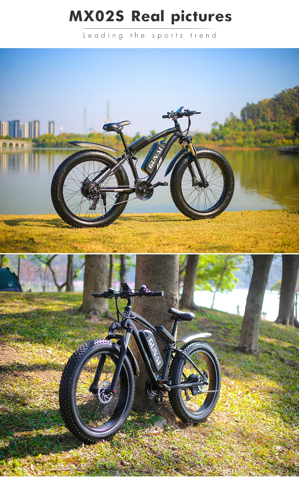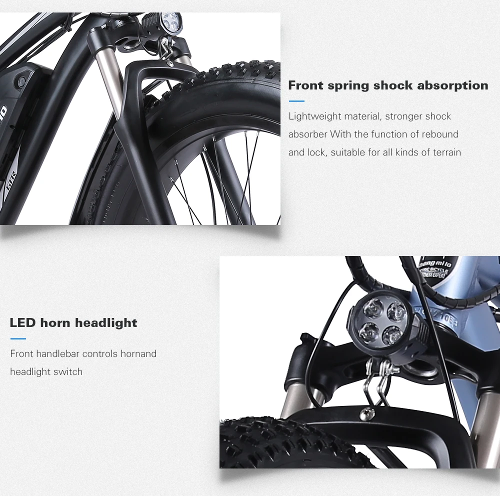 【 26x4,0 горный велосипед tire】 MX02S Электрический велосипед имеет супер мощность 1000 Вт. Чем шире ширина шин, тем лучше сопротивление езды и ударопрочность. Это может уменьшить удары и сделать его таким же удобным, как автомобиль.