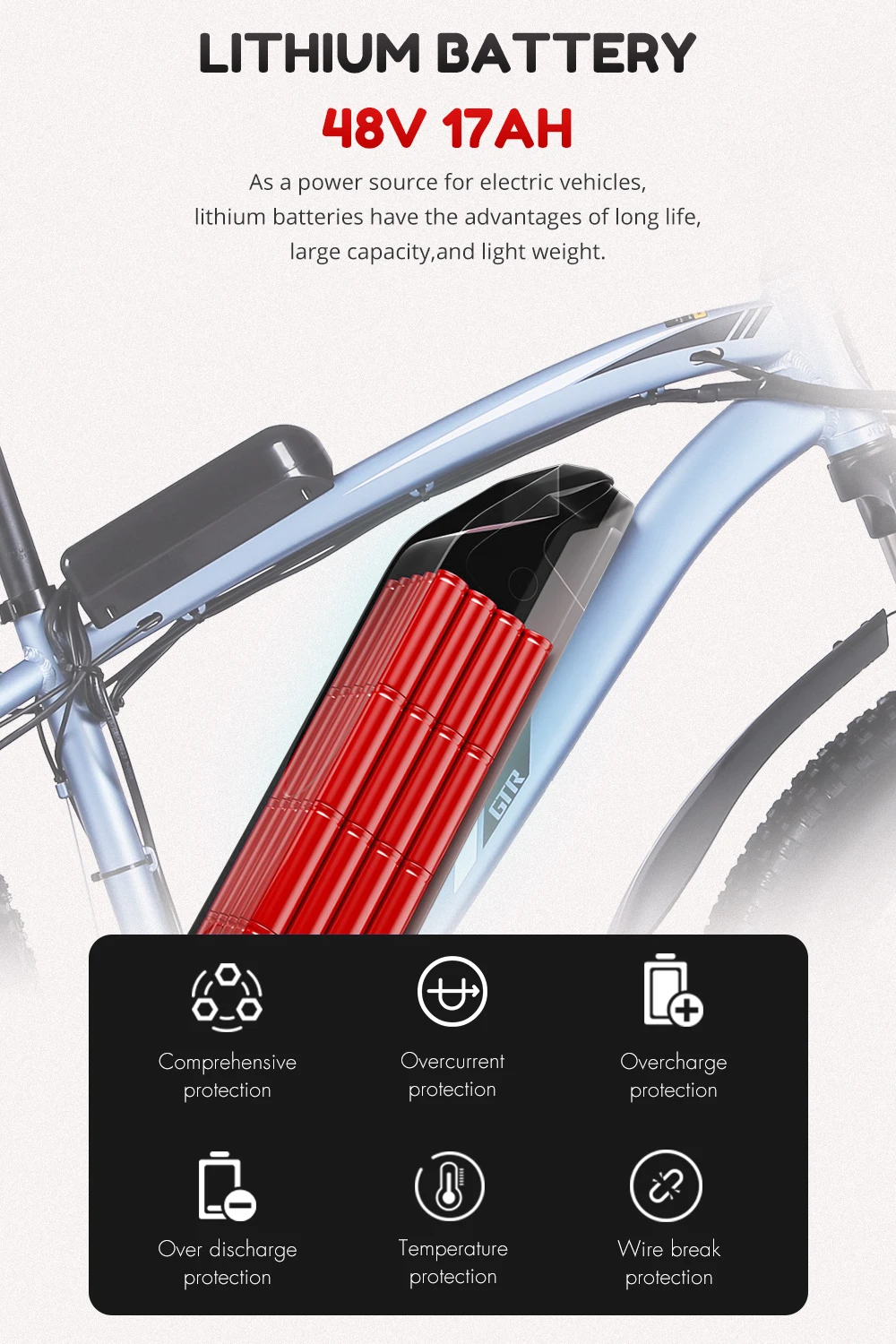 【 48V 17AH литий BATTERY】As источник питания для электрических велосипедов, литиевые батареи имеют преимущества долгий срок службы, большая емкость, и светильник вес.
