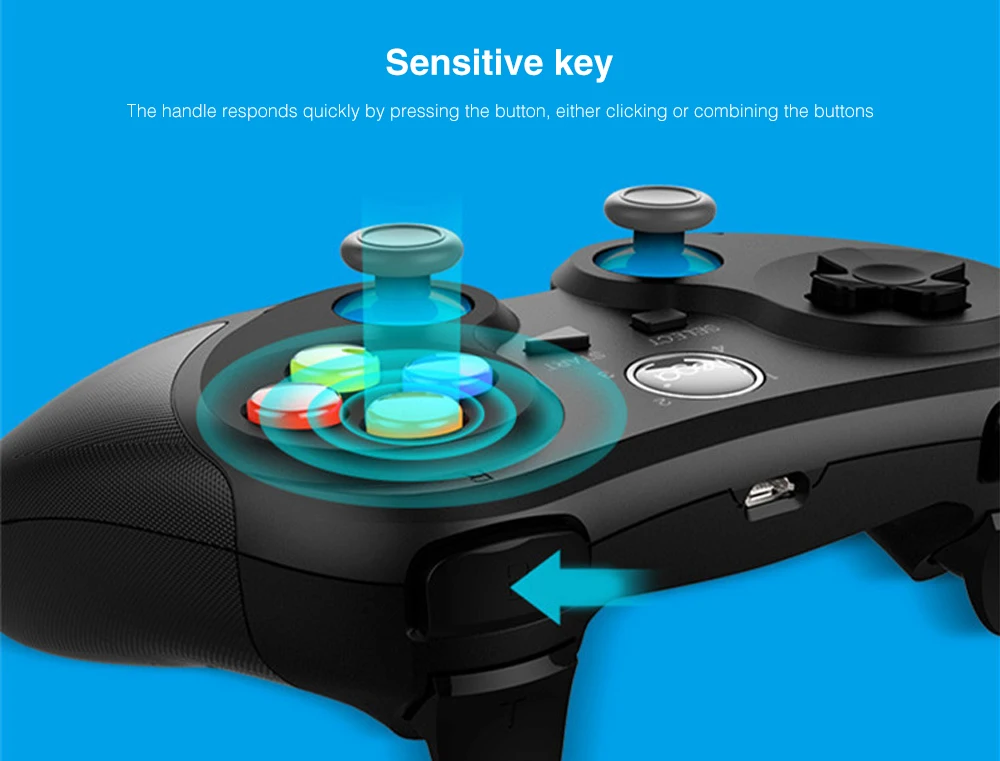 * Поддержка играть в игры на BT с поддержкой Android/iOS смарт-телефонов/планшетов, ПК, смарт-ТВ, Win 7/8/10 системы, кроме того, Поддержка 2,4G беспроводное соединение с компьютерами ПК. * Поддержка функции TURBO (ускорения), делает его более сильным и быстрым, когда играете в игры. * Кнопки мультимедийного плеера «Громкость +», «последний», «следующий», «воспроизведение/пауза» могут использоваться в режиме мыши. * Размер продукта: 175*135*65 мм