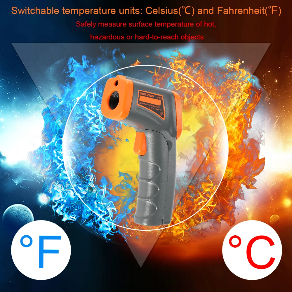 Этот цифровой Бесконтактный инфракрасный термометр является надежным промышленным измерительным пистолетом, используемым для измерения температуры поверхности объекта безопасно и быстро менее чем за секунду. Может широко использоваться в нефтяной и химической промышленности, железной дороге, электричестве, текстильной промышленности и т. д.