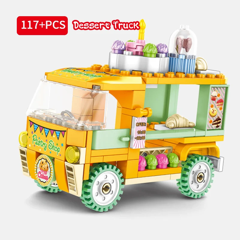Городской мини-уличный вид, серия игрушек, еда, корзина, еда, грузовик, милая 3D модель, строительные блоки, сборка, дети, подарки