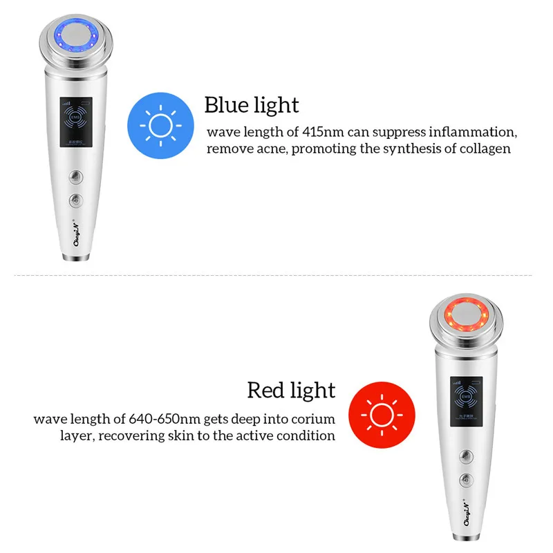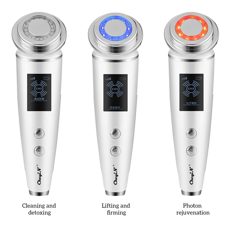 3 режима: 1) Режим очистки от детоксикации: тепло и вибрация для получения примесей, эффективно для очистки пор. 2) Режим фотонного омоложения: теплый, красный светильник и вибрация для отбеливания кожи и удаления морщин. 3) Укрепляющий и подъемный режим: теплый, синий светильник и вибрация для улучшения кровообращения, повышения эластичности кожи и улучшения состояния кожи. Как Применение: 1) Длительное нажатие [ВКЛ/ВЫКЛ] Кнопка включения/выключения. 2) Короткое нажатие кнопки [ВКЛ/ВЫКЛ] для переключения режимов. 3) Короткое нажатие кнопки [интенсивность] для включения интенсивности.