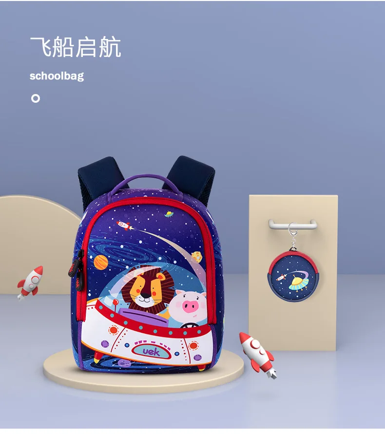 UEK детская школьная сумка для мальчиков, водонепроницаемый рюкзак Русалочки с защитой от потери, рюкзак для детского сада, для девочек, с рисунком ракеты, сумка для книг для детей ясельного возраста