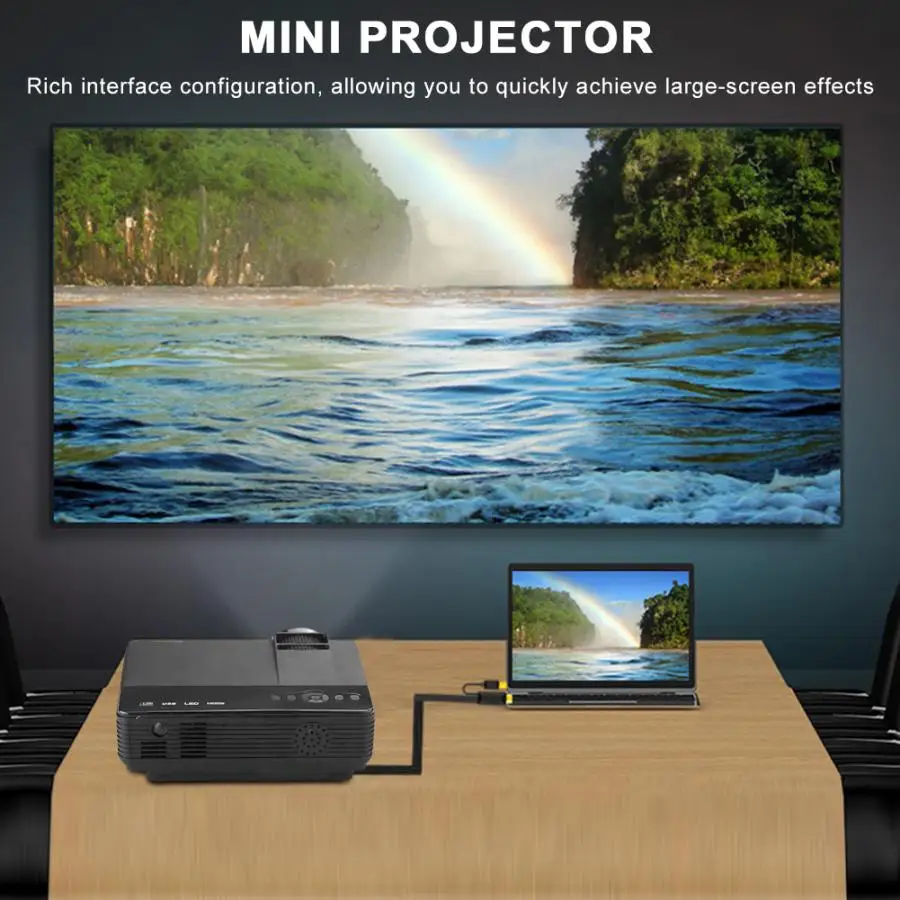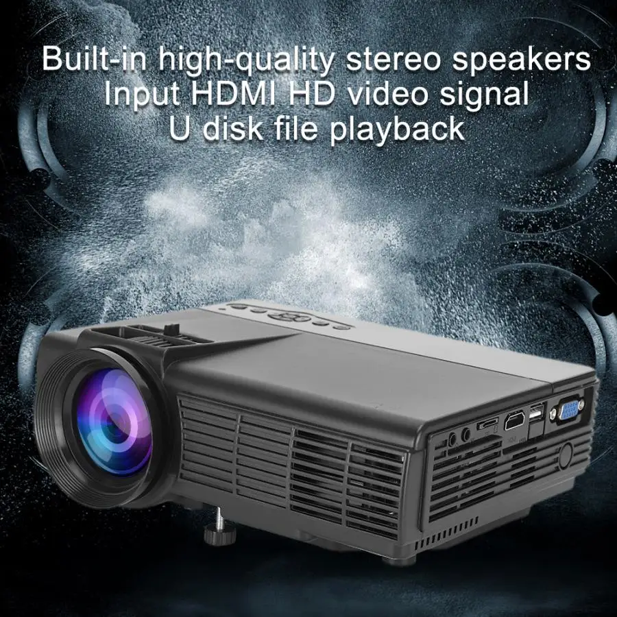 Встроенный динамик 2dn/8ohm HDMI / VGA / AV 576i, 720P, 720i, 720P, 1080i, 1080P Keystoning коррекции ± 15 градусов Питание 110-220 В Дисплей Технология Тип ЖК-дисплей технологии Светильник источника Технология Тип Светодиодный светильник источник Яркость 1000 лм (национальный стандарт ISO) Контраст 1000:01:00 Разрешение 800x480 Диагональ Размер экрана 37-100 дюймов Проекционное расстояние 1,16-3,0 м Установка метод Передняя проекция, задняя проекция, подъем, Рабочий стол Изображение Размеры 37 дюймов/1,16 метров Экран соотношение 16: 9/4: 3 Светильник источника Яркость однородность 90% Метод фокусировки Руководство по эксплуатации Прогнозируемый Цвета 16,77 миллионов Светильник срок службы от источника энергии ≥ 50000 часов Максимальная поддержка карты памяти (диска) Накопитель SSD на 64 Порты и разъёмы USB вход x 1, карта памяти вход x 1, AV x 1, HDMI вход x 1, VGA вход x 1 Аудио Выход X 1 (L / R) Мощность потребление Стандартный ≤ 50 Вт Пульт дистанционного управления Управление Батарея 2 батареи AAA (не входит в комплект)