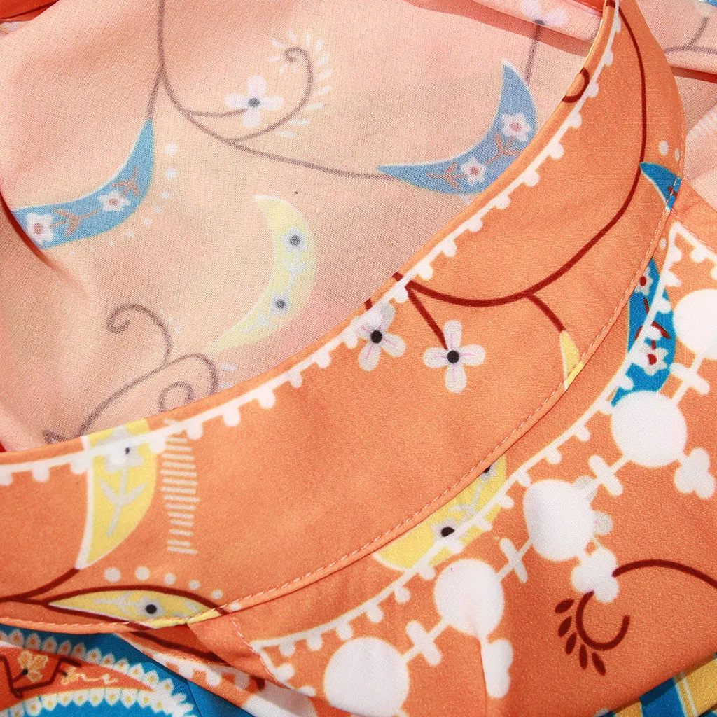Женское богемное платье с лямкой на шее без рукавов с принтом, короткое платье, летнее пляжное платье