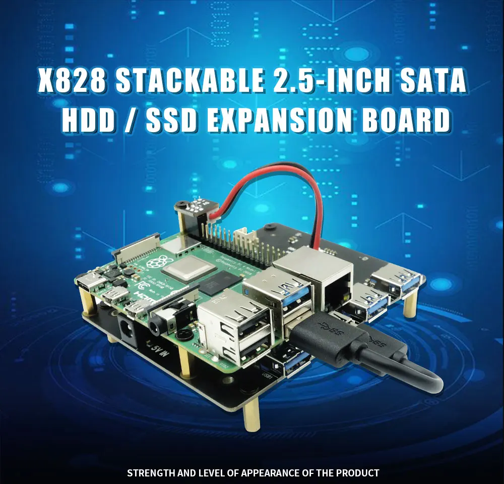 В X828 стекируемые 2,5 "жесткого диска SATA HDD Плата расширения, ориентированная на больший решение для хранения ваших Raspberry Pi B/2B/3B/4B. Плата является отличным способом, чтобы придать настольному компьютеру внешний вид, так как вы можете подключить несколько внешних жестких драйверов без их «подвешивания» от usb-портов вашего SBC. Зная, что нашим пользователям может потребоваться больше входов USB, мы добавили дополнительные порты USB 3,1 Gen1 к X828, чтобы пользователь мог подключать клавиатуры, USB палки или даже другие внешние HDDs. Если вы ищете создание медиа-центра или даже сетевого хранилища (NAS), X828-это правильная плата для него. Вы сможете отделить один жесткий диск только для операционной системы и остальное для мультимедиа, игр... и т. Д. Raspberry Pi 4B не содержится в этом продукте.