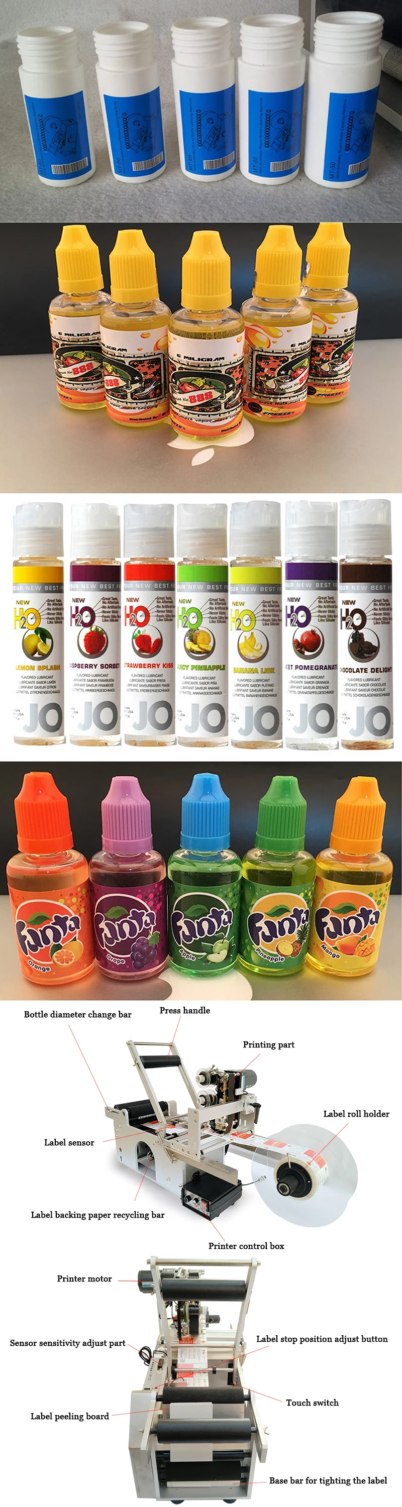 2. В основном подходит для всех видов круглых бутылок несушильной этикетки, может точно позиционировать. Плюс принтер кода, может быть непосредственно к кодовой этикетке. Край рант.