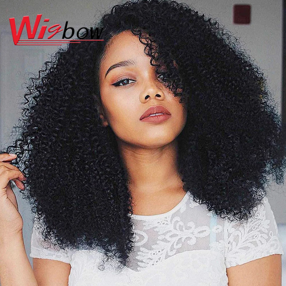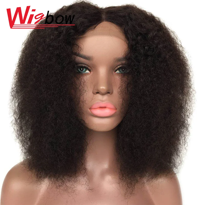 Афро кудрявый парик 4*4 Кружева Закрытие человеческих волос Парики монгольский кудрявый парик для женщин естественный цвет Закрытие человеческих волос парики челки