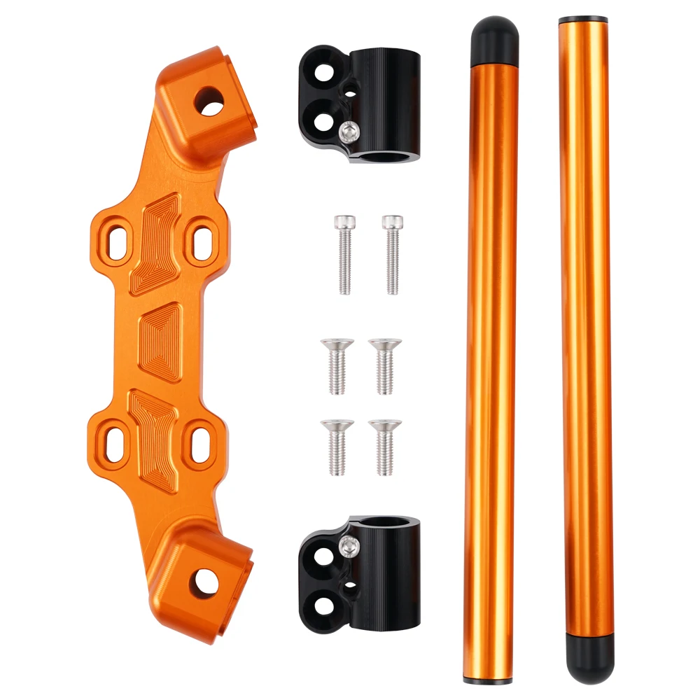 Каждая пластина изготовлена из твердого алюминия, придающего вашему велосипеду индивидуальный вид, делая их намного прочнее, чем у руля на складе. Трубки руля хранятся как отдельные части, что позволяет недорогой замене в случае аварии.