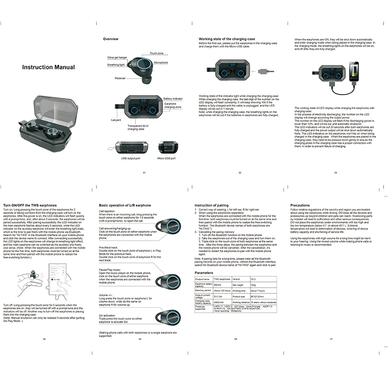 <Bluetooth 5,0 и технология TWS: настоящие беспроводные наушники Bluetooth 5,0. Со встроенным высококачественным звуковым чипом, обеспечивающим вам кристально чистые высокие и низкие частоты. Быстрая и стабильная передача, без запутывания.