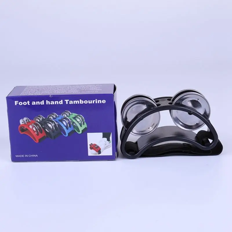 Ножной Тамбурин перкуссия со стальными Jingles для Cajon & гитарных игроков черный