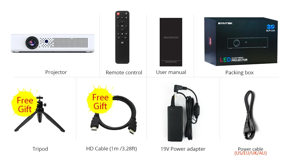 Уникальные преимущества BYINTEK R191) Настоящий 3d-шокирующий эффект для BlueRay 3D2) видеоигра с WiFi-дисплеем для смартфона3) используется Американский DMD-чип, мегапиксельное микро-зеркало, поворот на 17 ° с большим углом.4) Максимальная поддержка декодирования 4K5) Поддержка декодирования HDR 106) Электрическая фокусировка с помощью пульта дистанционного управленияДругие проекторы не имеют этих функций