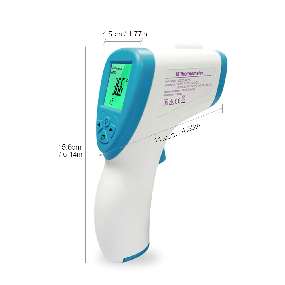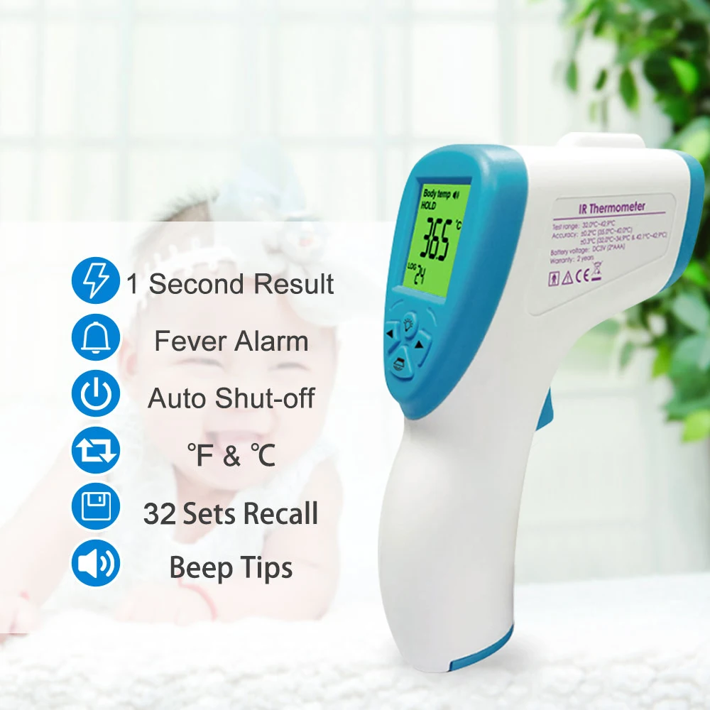 Точный инфракрасный термометр, Бесконтактный и удобный в использовании. Одна кнопка измерения, большой ЖК-дисплей с трехцветной светильник. Разработан для точного, безопасного и быстрого измерения температуры в лбу, комнате и предмете.
