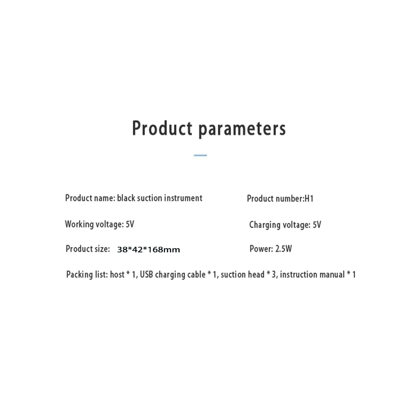 Вес изделия: 98,5 г Размер изделия: 16,8*4,2*3,8 см Материал: АБС-пластик Вход мощность: 2,5 W Рабочее напряжение: 5 В Вход ток: 350MA Емкость аккумулятора: 350 мАч Тип батареи: литиевая батарея (зарядка через USB) Сила всасывания: ≤ 60KPA