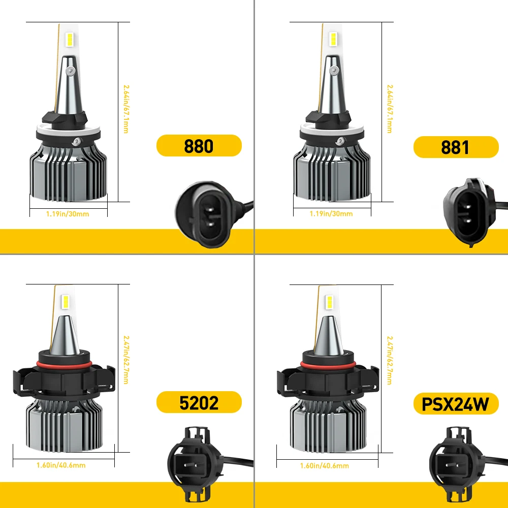 Цоколь: H11/H8/H9/H16(JP), H10, 9005/HB3, 9006/HB4, PSX24W, 5202/H16EU, H27/881, H27/880