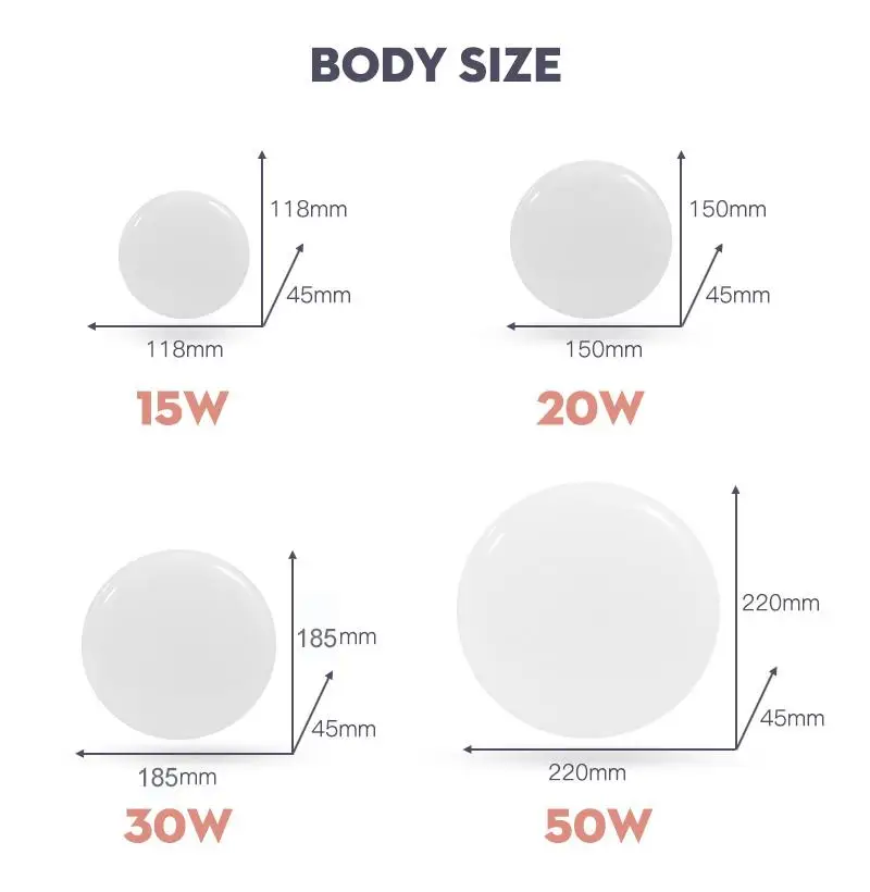 Lámpara светодиодный de techo montada поверхность de alta potencia 15/20/30/50 Вт luces de techo светодиодный modernas para sala de estar Баньо cocina светильники Voltaje: AC180-265V светодиодный чип: SMD2835 Материал: PC + ABS утилизадо Цвет: 6500K, ультратонкое естественное освещение CRI: 80 eficiencia luminosa: aproximadamente 95 Garantía: Garantía de 1 год