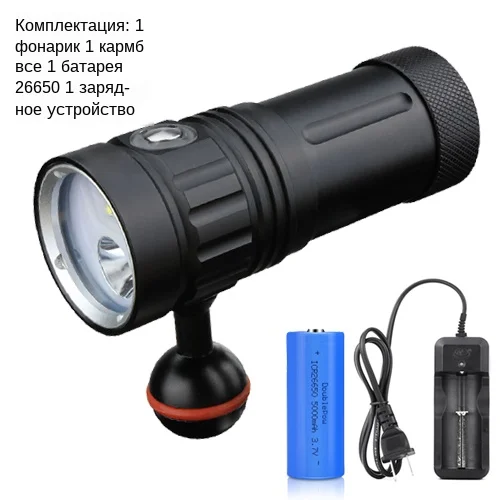 Спецификация Модель: DR08 светильник для дайвинга Угол отправки: 90 градусов заполняющий светильник + 10 градусов точечный светильник Водонепроницаемость: 100 метров Рабочее напряжение: 3,7-4,2 В Вес под водой: 156 г (без аккумулятора) Вес земли: 308 г Источник питания: 1*32650 и 1*26650 и 1*18650 (не входит в комплект) Размер: 44 мм (D)* 112 мм (L) Аксессуары: Универсальная шаровая Головка, внутренний шестигранный ключ, ремешок, запасное уплотнительное кольцо, Журнал, руководство пользователя. ① XP-L2 * 1 прожектор (840 люменов; 4 часа) XP-G2 * 3 прожектор светильник (910 люменов; 3 часа 30 мин) XP-E2 N3 * 2 красный (620 нм; 6 часов 10 мин) XP-E2 K2 * 2 синий УФ (465нм; 6 часов 18 мин) ② Алюминиевая твердая головка лампы, улучшенная теплоотдача, износостойкое окислительное покрытие. ③ Многоуровневая система затемнения; Длительное нажатие, чтобы включить, нажмите, чтобы переключить Режимы (точечный светильник, прожектор, синий УФ, красный светильник) Цифровая система управления внутри, пожалуйста, используйте 1 32650/1*26650/1*18650 литий-ионный аккумулятор Внимание: Фонарик-Это выходное устройство высокой яркости, которое может генерировать много головок при непрерывном использовании. Пожалуйста, внимательно прочитайте руководство и следующие предупреждения/рекомендации для безопасного использования. 1. Не оставляйте фонарик без присмотра. 2. Держите фонарик в недоступном для детей месте. 3. Не светите фонариком прямо на глаза животных или людей. 4. Не используйте литий-ионный аккумулятор без безопасной цепи. 5. Извлеките батареи для длительного периода бездействия или во время транспортировки. 6. Пожалуйста, смазывайте водонепроницаемый рулон и нить во время погружения. 7. Наш продукт может выдерживать только максимум 100 метров, пожалуйста, не превышайте его. 8. Пожалуйста, используйте смазочную смазку, но не смазку, очищенную от нефти. Посылка: Посылка A 1 * CREE светодиодный фонарь для дайвинга 1 * Универсальная шаровая Головка Посылка B 1 * CREE светодиодный фонарь для дайвинга 1 * Универсальная шаровая Головка 1*26650 батарея Посылка C 1 * CREE светодиодный фонарь для дайвинга 1 * Универсальная шаровая Головка 1*26650 батарея 1 * зарядное устройство